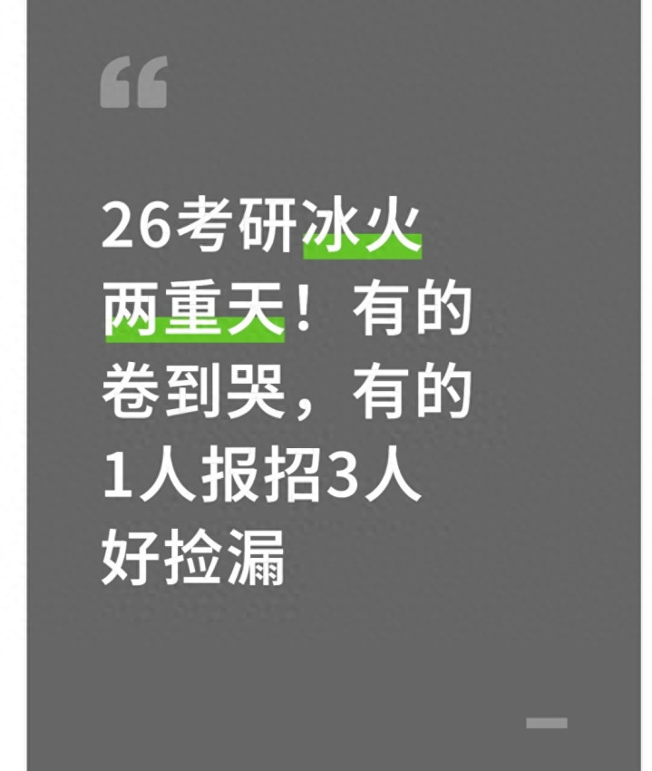 26考研的冰火两重天,本质是考研从“盲目跟风”转向“理性选择”的体现。343万考生里,有人挤破头抢热门赛道,有人捡漏上岸冷门专业,选择不同,结果天差地别。